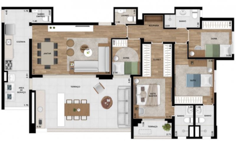 - Área Privativa: 136 m²