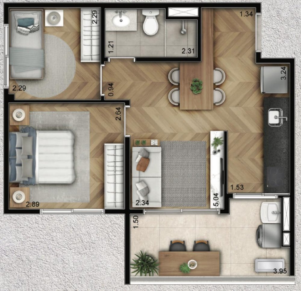 • Área Privativa: 44 m²