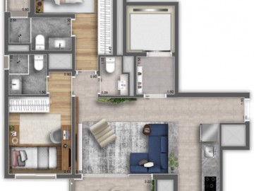Empreendimento único na região. Apartamento com 2 suítes (banheiros com iluminação natural), lavabo, varanda com churrasqueira e hall social privativo. Empreendimento com excelente área de lazer e localização privilegiada.