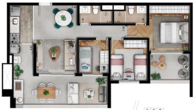 - Área Privativa: 91 m²